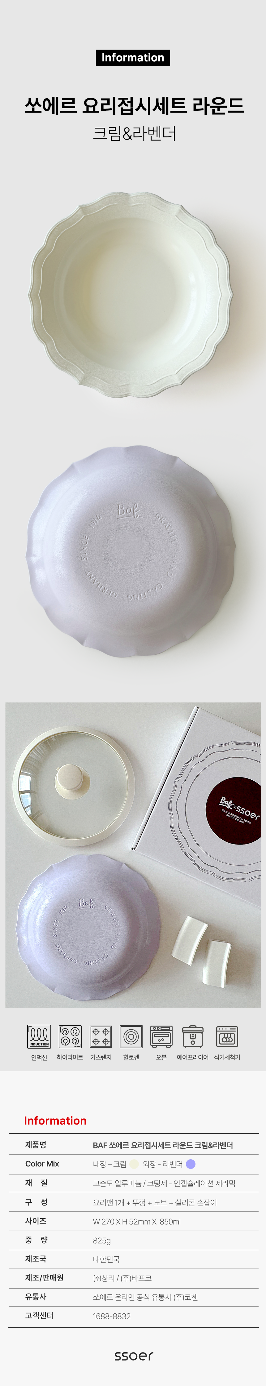 > 쏘에르 라운드 요리접시세트 크림&라벤더