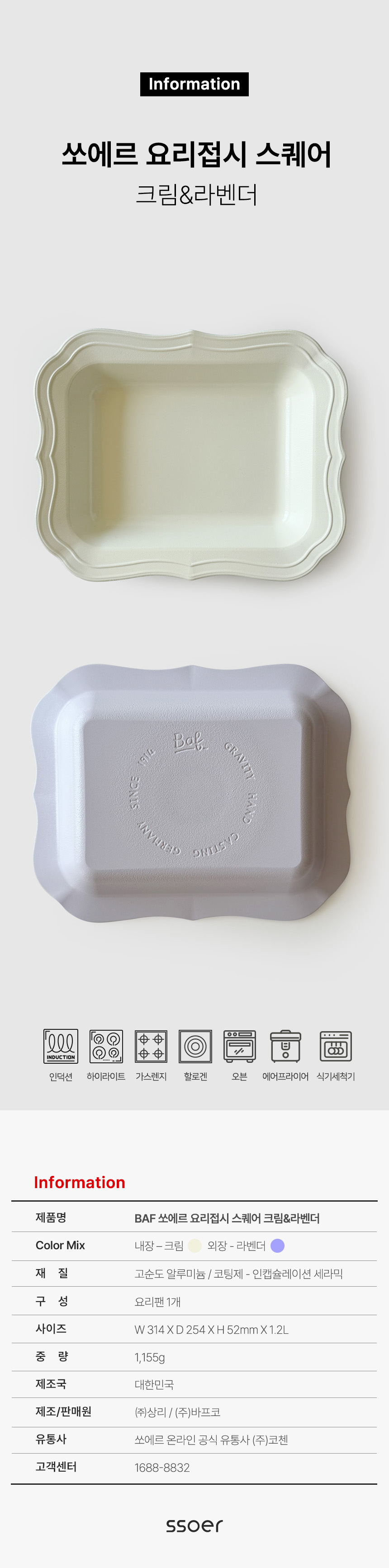 > 쏘에르 스퀘어 요리접시 크림&라벤더